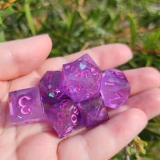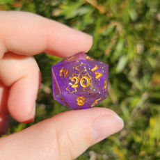 Handmade dice, used for tabletop games such as Dungeons & Dragons, made from epoxy resin.